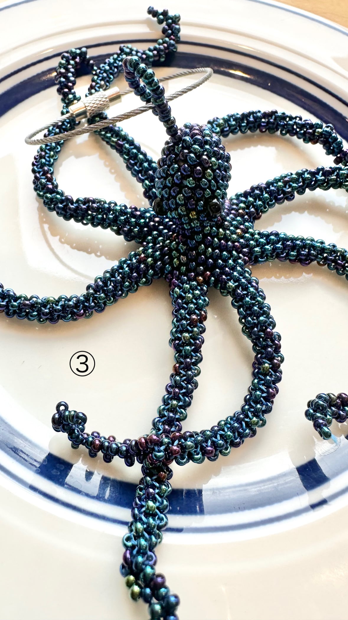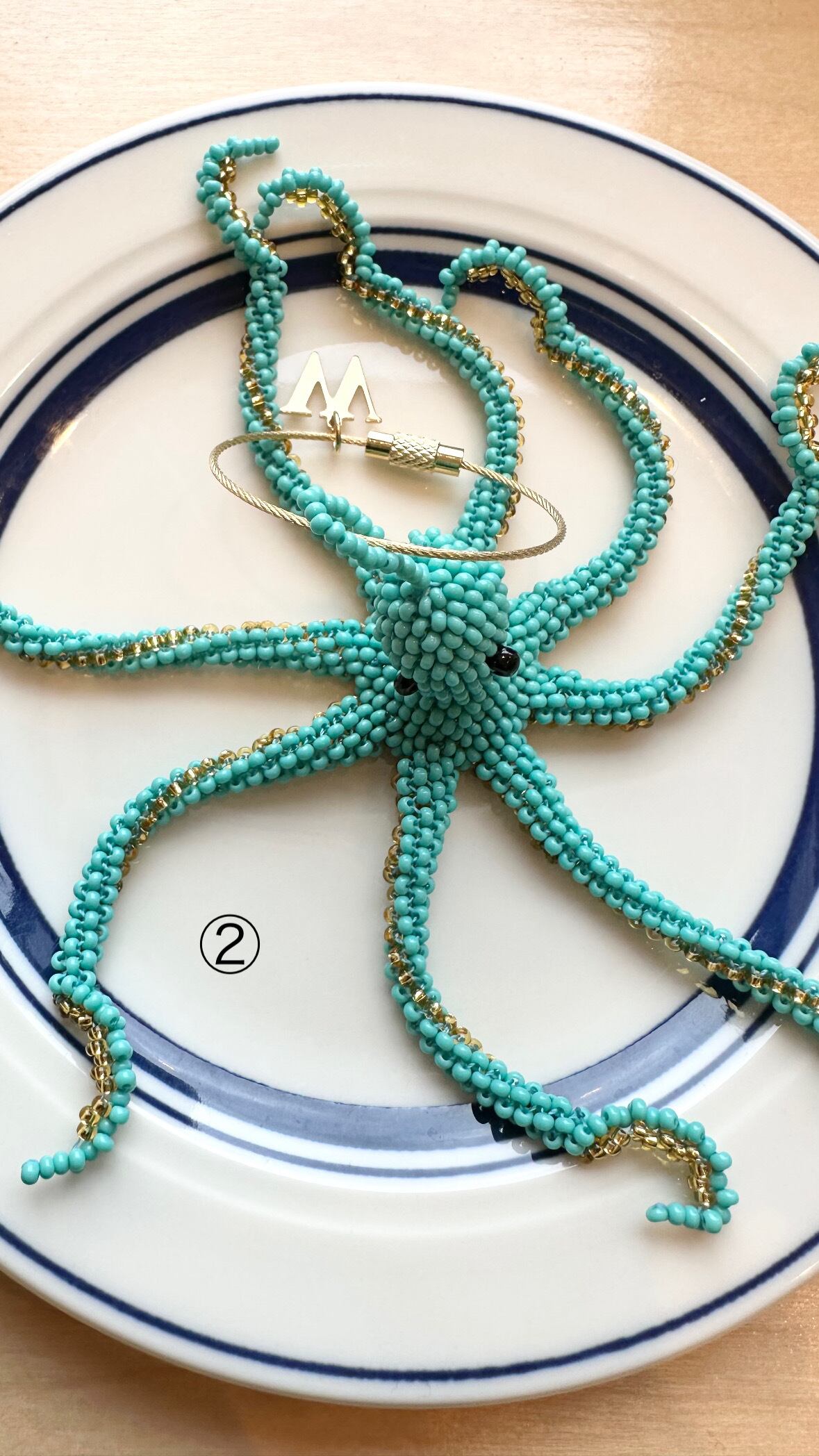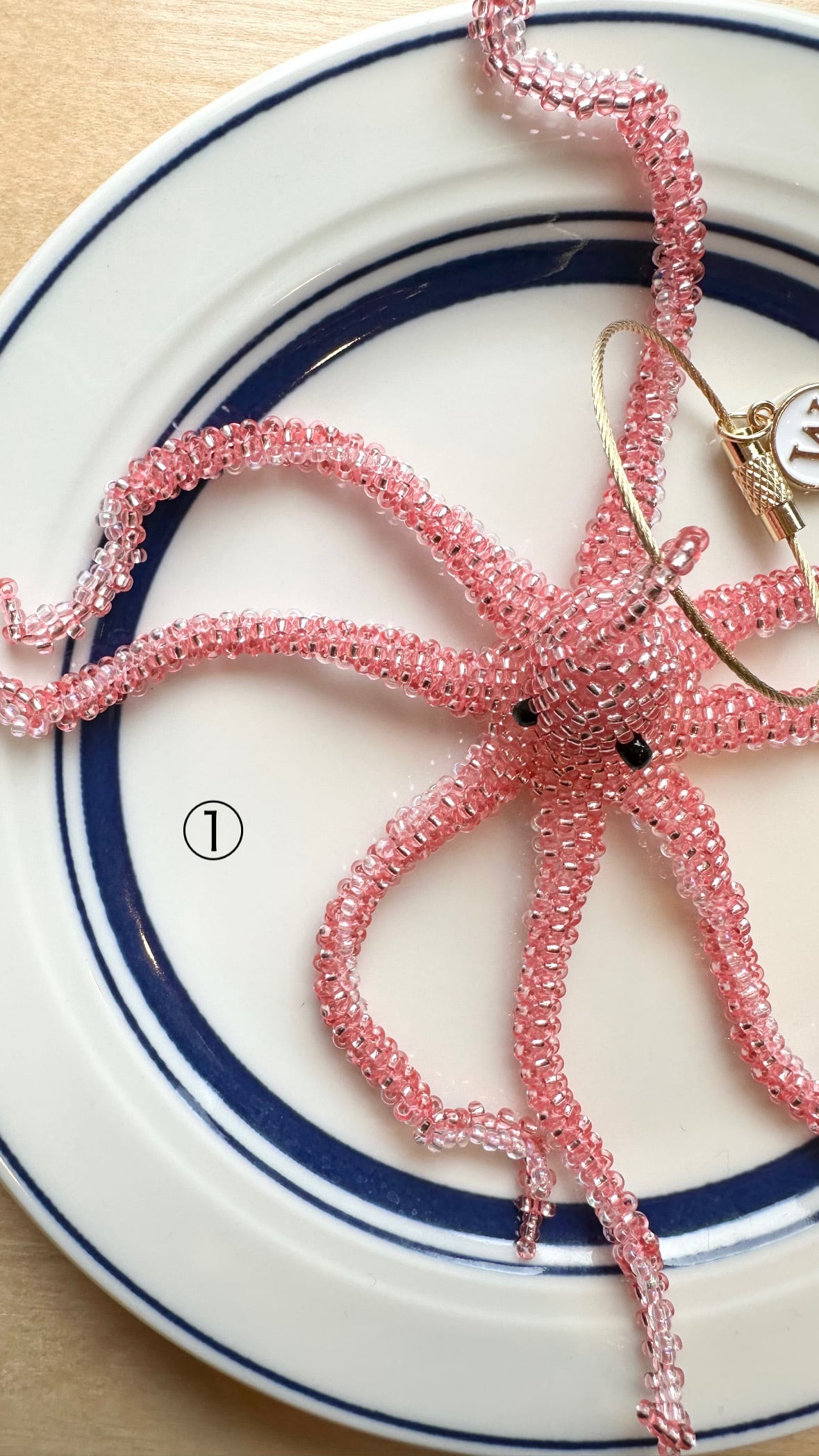 ハンドメイドでビーズでしっかり編まれたチャームです。