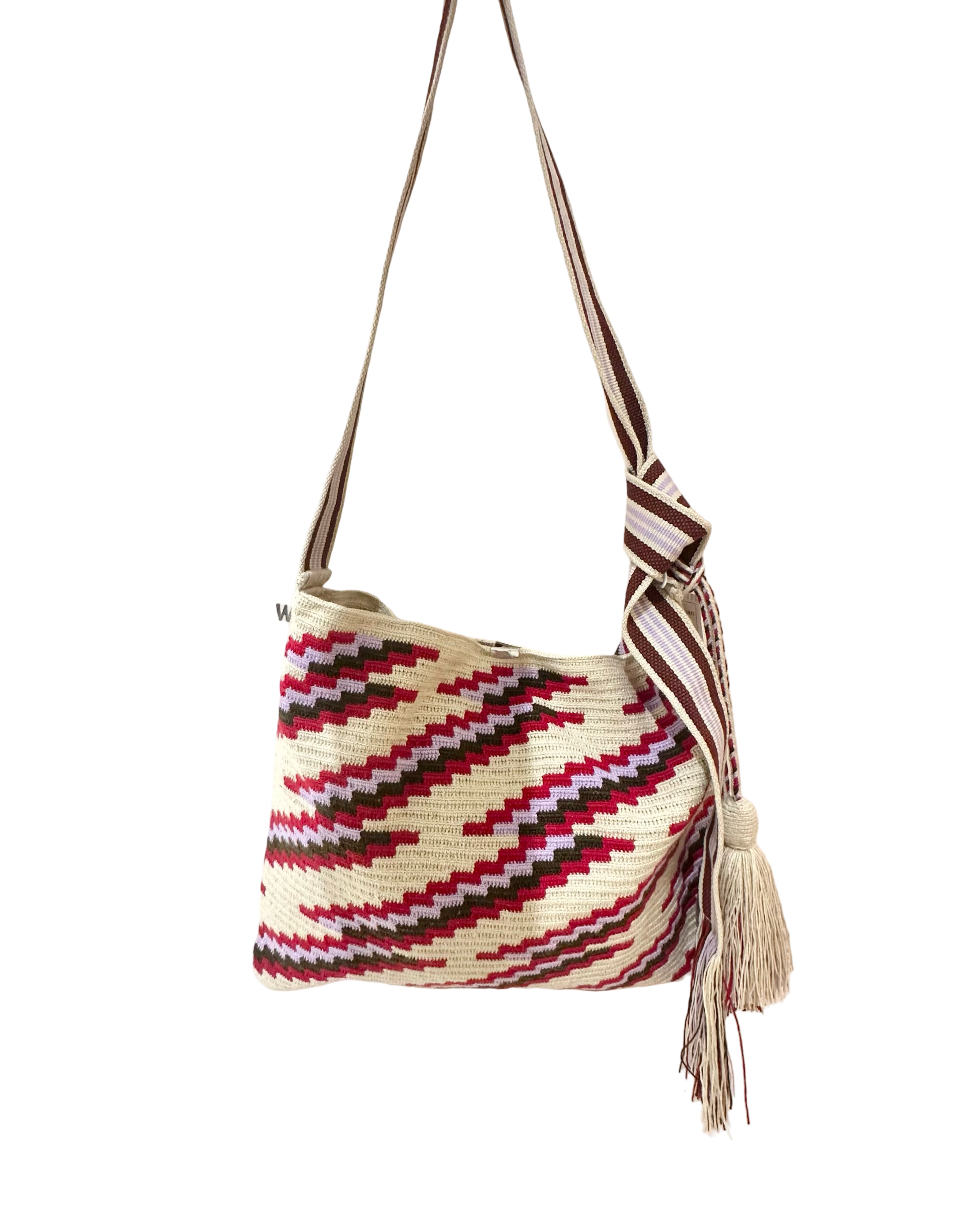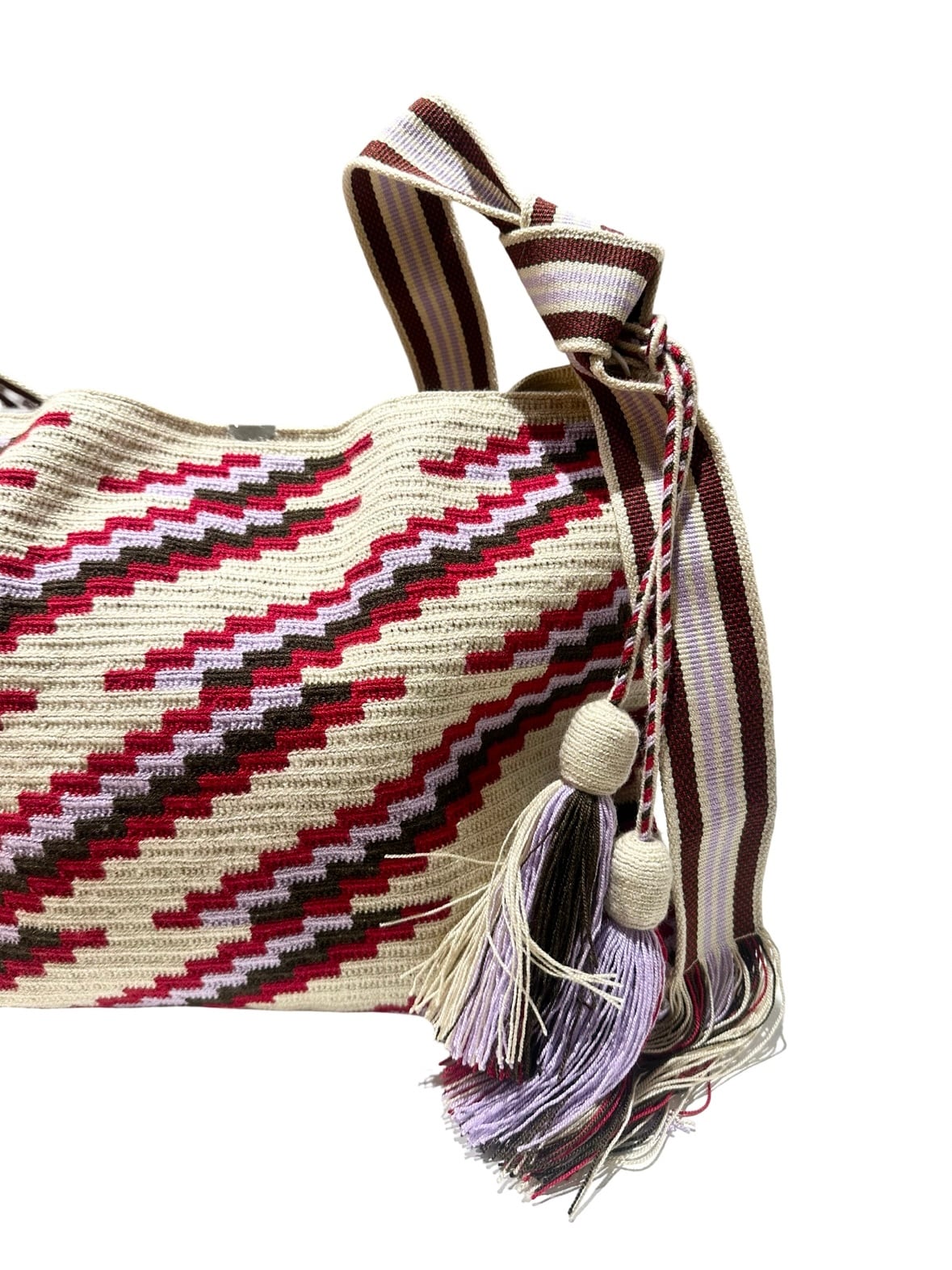 ワユーバックはコロンビア現地の職人によるハンドメイド製品のため、機械で作ったもののように完璧な作りではありません。全て一つ一つ手作りのため、ほつれや結び目等もあります。また、底のデザインやタッセルの仕様が違うこともございます。